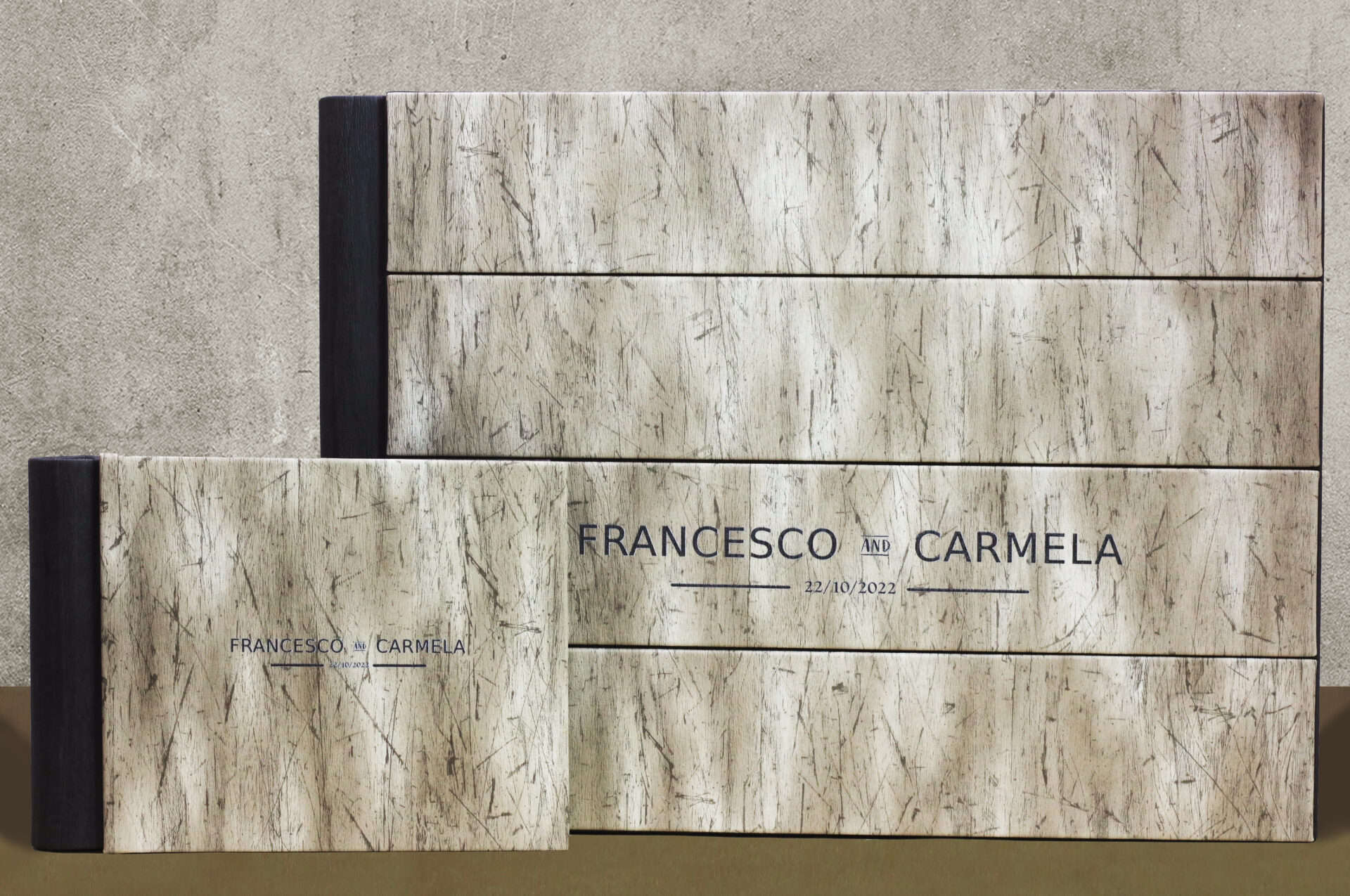 Copertina in acero con inserti in ecopelle e tracciato stampato con stampa diretta uv
