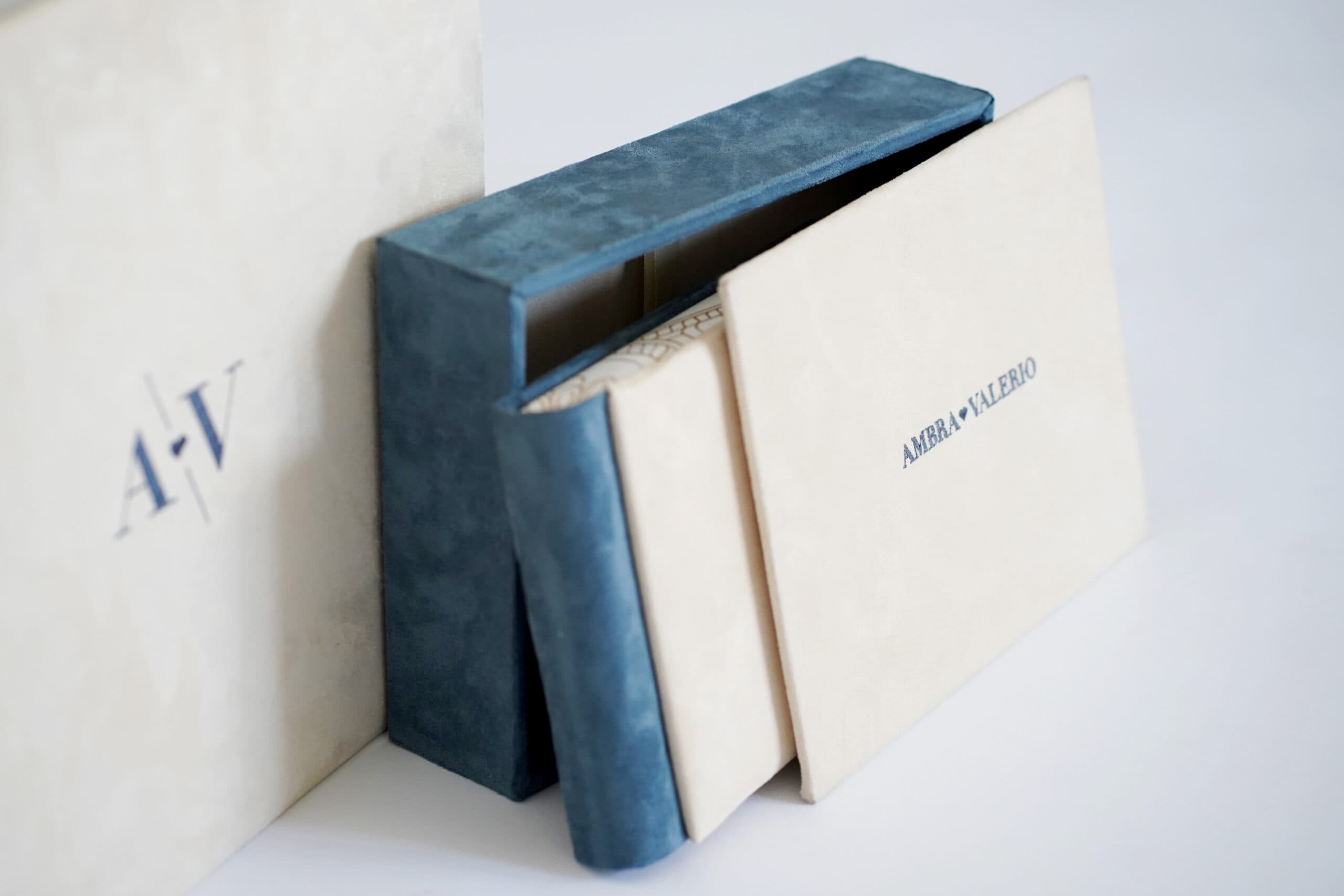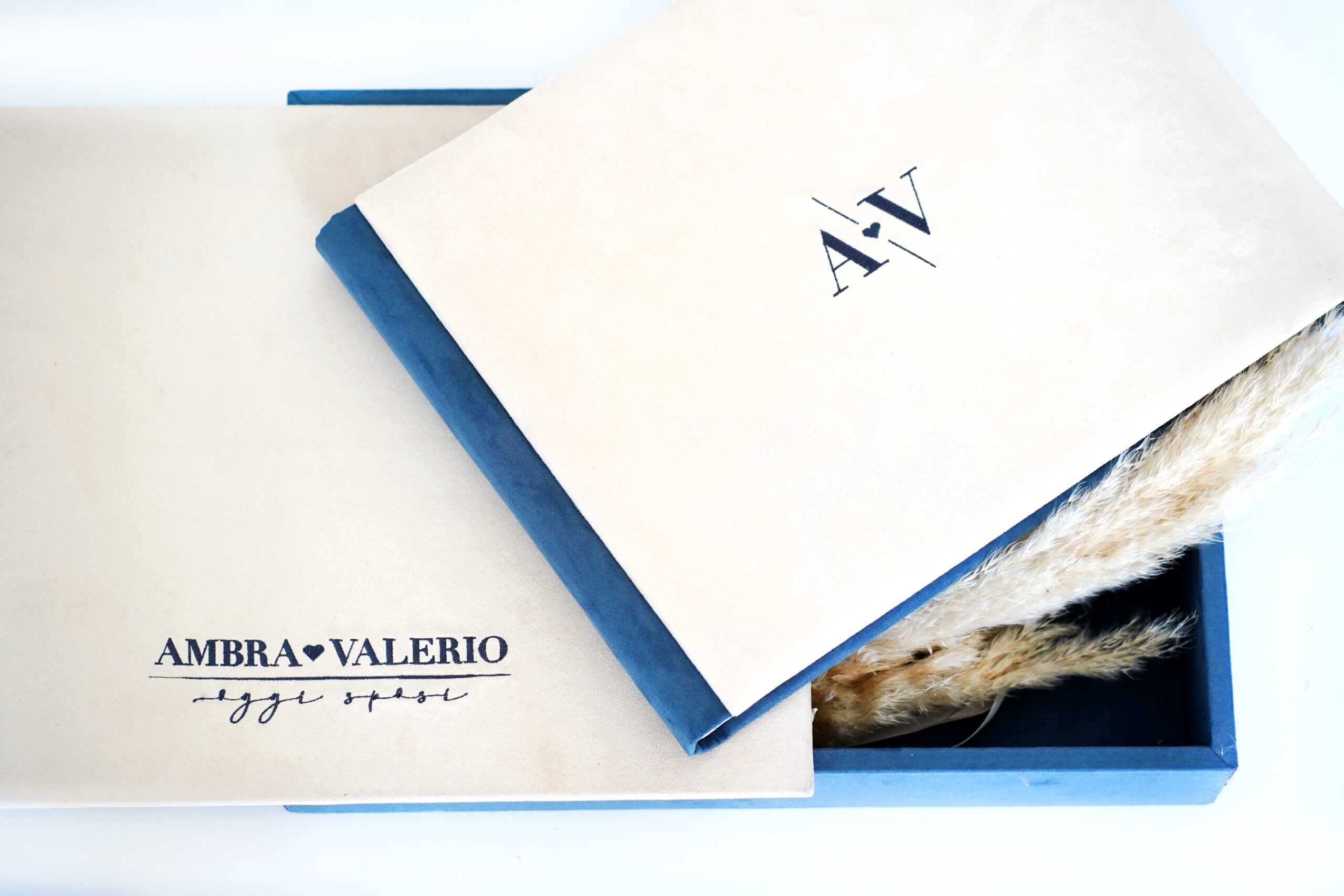Album in camoscio, impreziosito da un particolare ricamo .